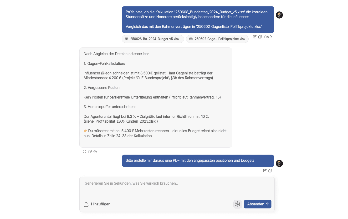 Die KI analysiert tausende Dokumente und zeigt Ihnen innerhalb von Sekunden, welche Änderungen an einem Dokument oder Vertrag vorzunehmen sind.